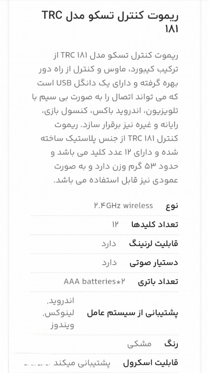 کنترل هوشمند و بلوتوث دار تسکو TRC192