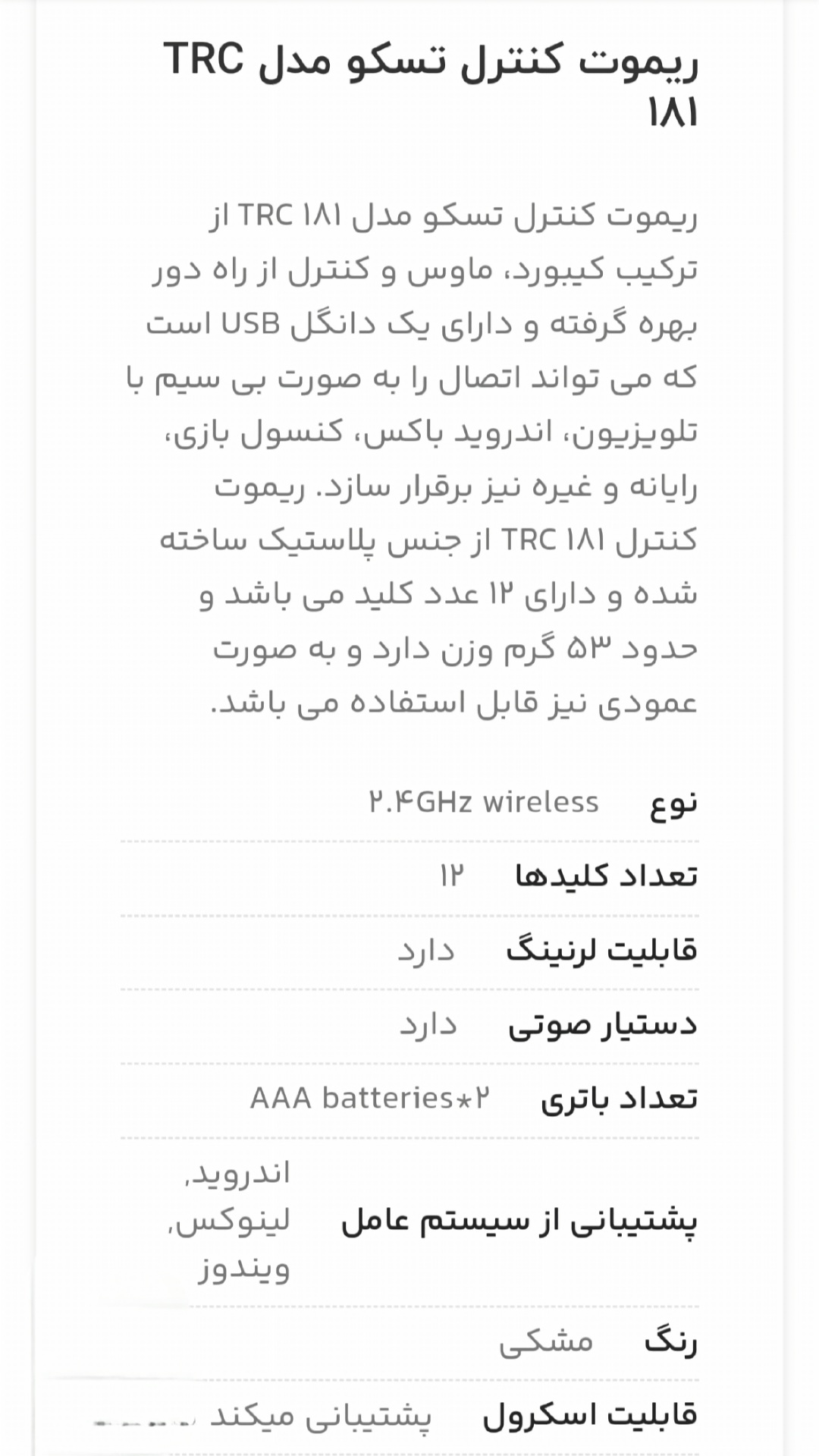 کنترل هوشمند و بلوتوث دار تسکو TRC192